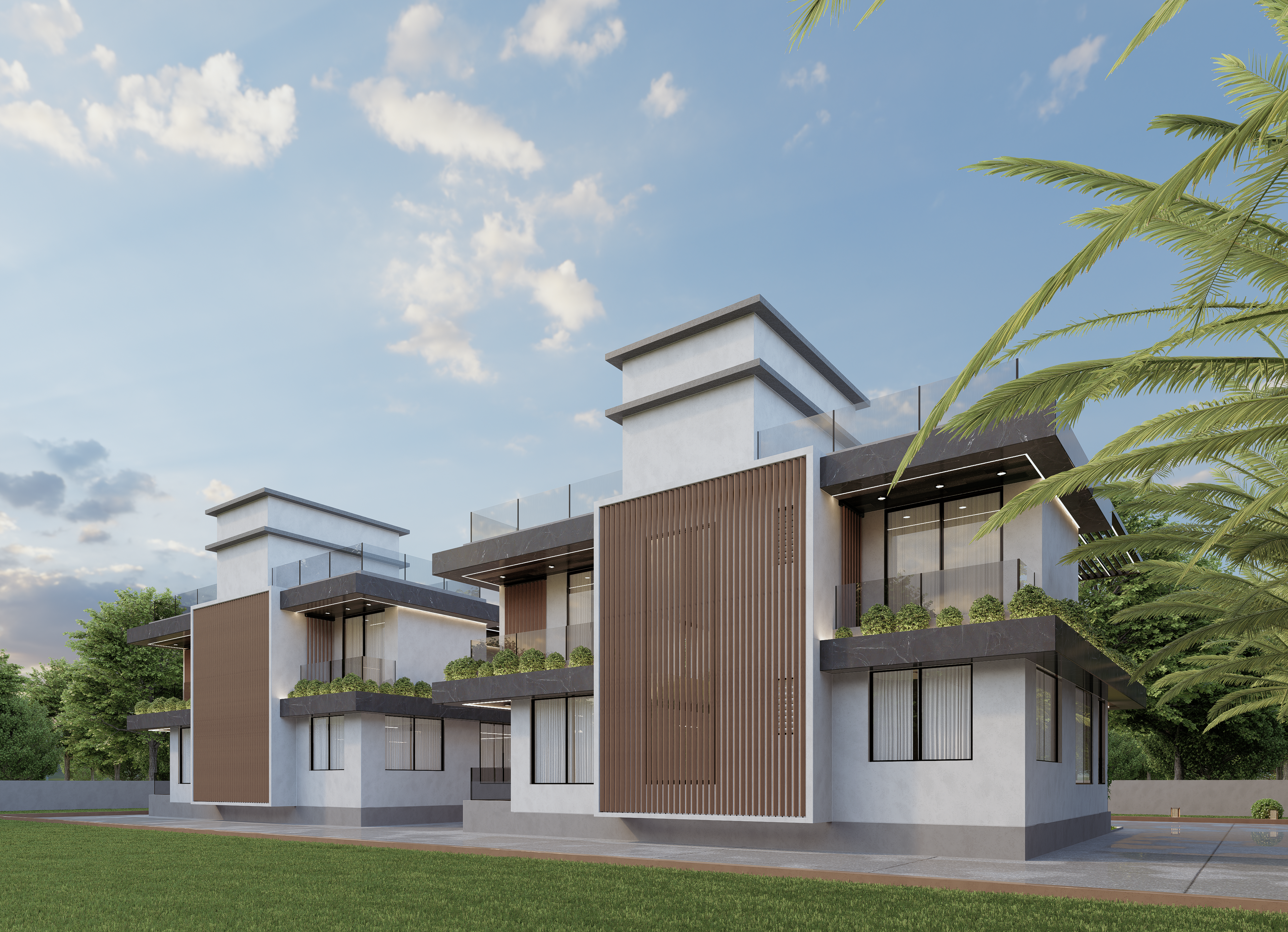 Crafted for Living, Rooted in Place FORM MEETS. FUNCTION, GRACEFULLY A thoughtfully planned residential development in Sashte, Wagholi, consisting of individual units with a built-up area of 285 sq. mt. each. The design aims to maximize functionality and aesthetics while adapting to the local context and terrain. Emphasis is placed on spatial efficiency, natural lighting, and seamless indoor-outdoor transitions.